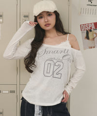 【キャミレイヤード風のデザインが目を惹くアシンメトリーなナンバリングロゴT】