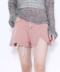 古着のようなダメージ加工や色落ち感がかわいいショートパンツ。ジャストウエストタイプでウエストインスタイルもきれいに着こなせます。S/Mの2サイズ展開。