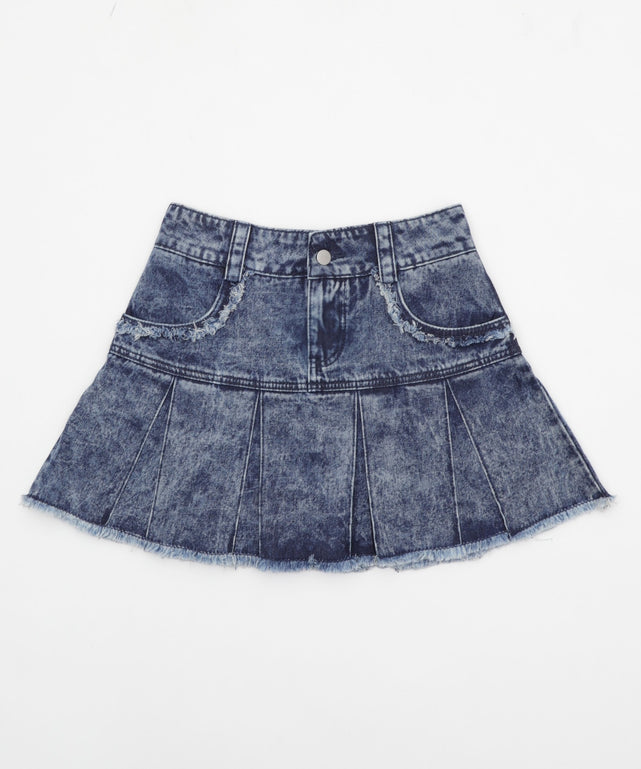 プリーツヘムフリンジデニムミニスカート《新色登場》
