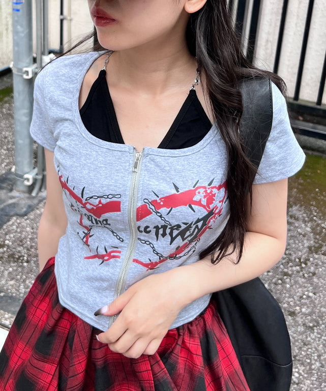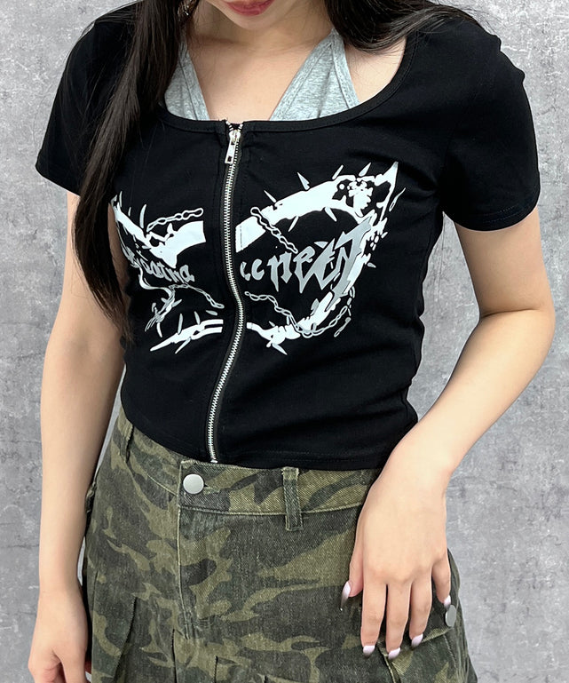 フロントZIPキャミ付きトップス