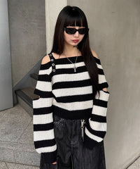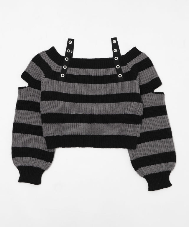 ストラップベルトオフショルボーダーニット