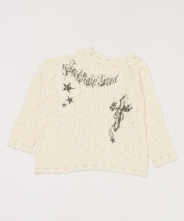 ダメージゴシックプリントニット