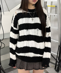 ダメージケーブルボーダーニット
