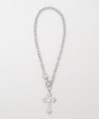 さりげないアクセントになるクロスネックレス。