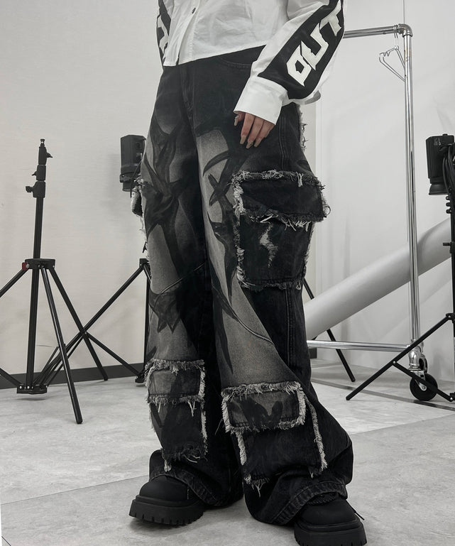 グラフィックペイントカーゴバギーデニム