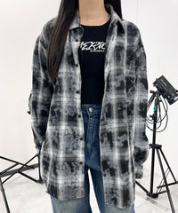 ブリーチ脱色されたデザインのチェックシャツ。