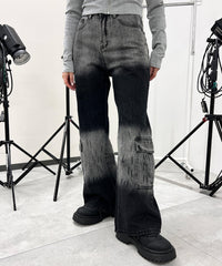 ブリーチ加工でデザインされたブラックデニムは