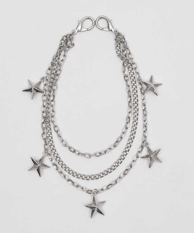 チェーンにクロス(十字架)や星のモチーフが並んだゴシックなアイテム。