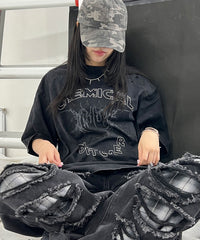 ユーズド感のあるダメージの効いたデザインTシャツ。