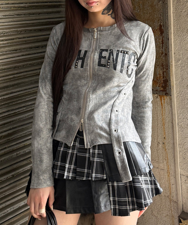 ロゴスタッズジップトップ/グレー モデル:160㎝ FREE着用