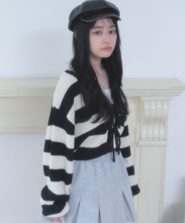フロントにあしらったリボンディテールが印象的な、ショート丈ニットカーディガン。