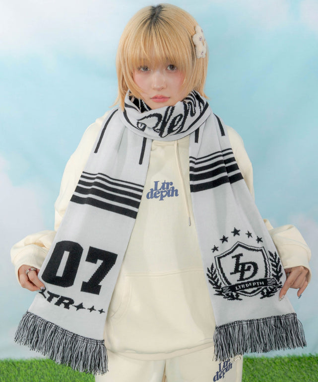 柔らかいアクリル素材で首元をあたたかく包み、ストリートスタイルにアクセントをプラス。