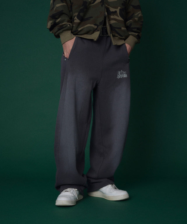 【フロントポケットに配置したブランドロゴグラフィックが存在感を放つ、ロゴスウェットパンツ】