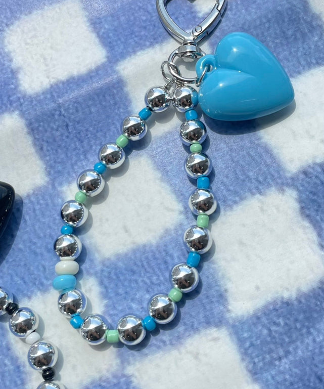 ハートメタルビーズキーホルダー/ブルー