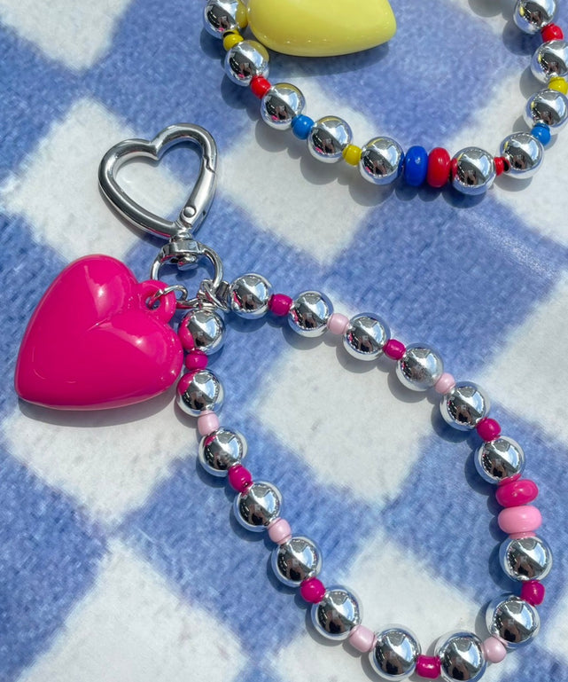 ハートメタルビーズキーホルダー/ピンク