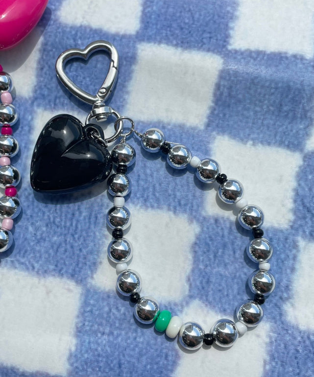 ハートメタルビーズキーホルダー/ブラック