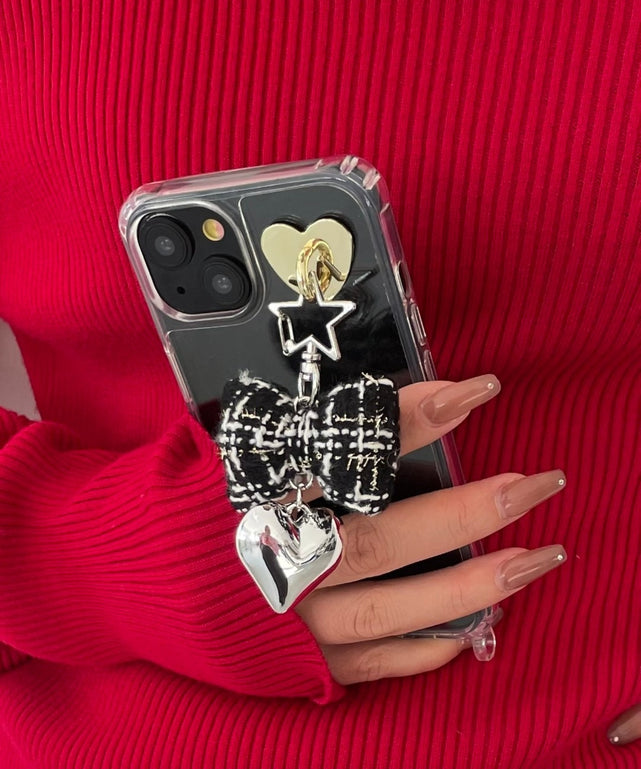 ツイード素材のリボンが女の子らしくて可愛いキーホルダー♪