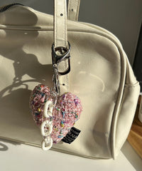 レッド、ピンク、ブラックの3色展開のツイード素材のハートモチーフがインパクト大♪
