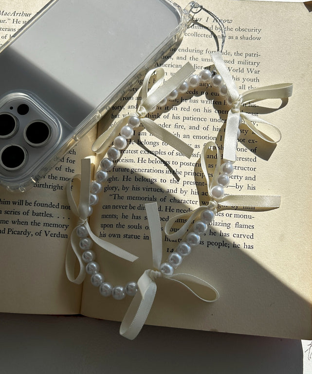 リボンパールストラップキーホルダー