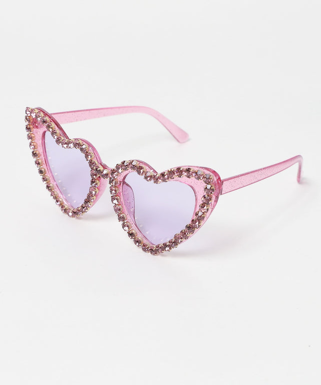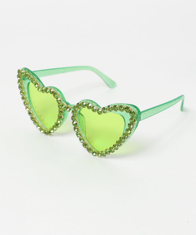 ハート型のサングラスをビジューで縁取った