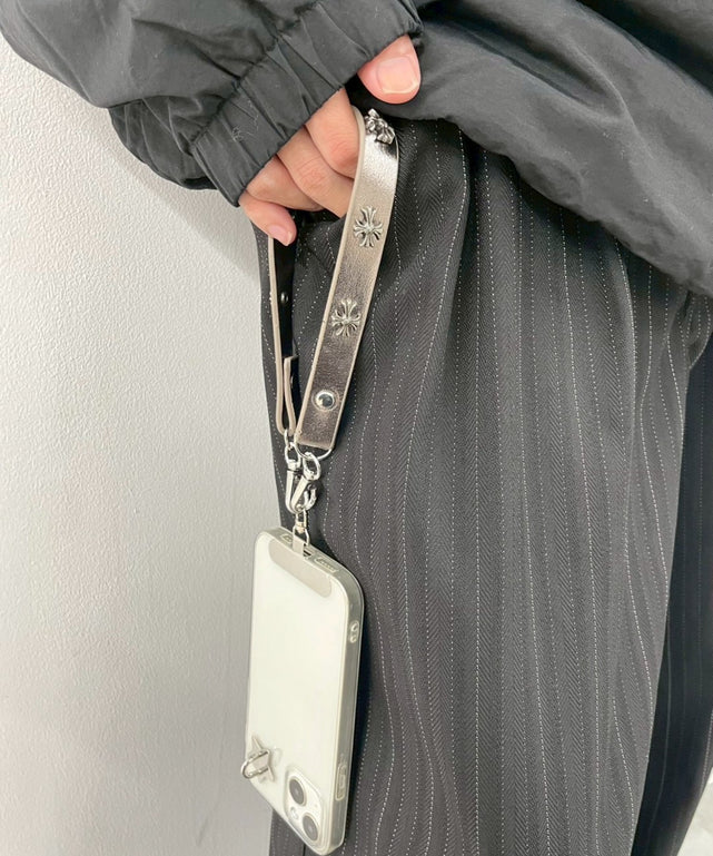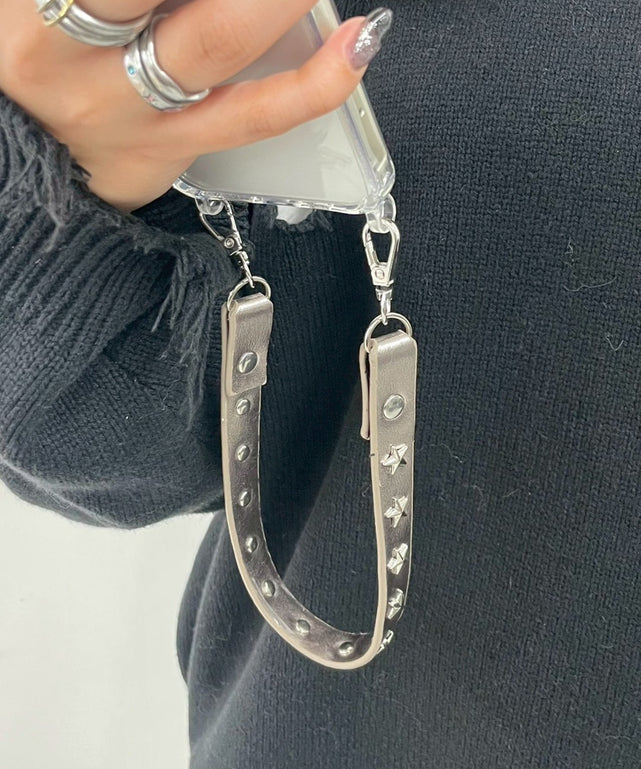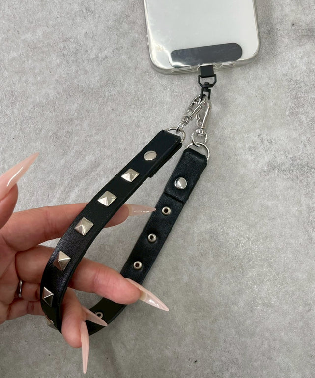スタッズの装飾が施されたハンドストラップ