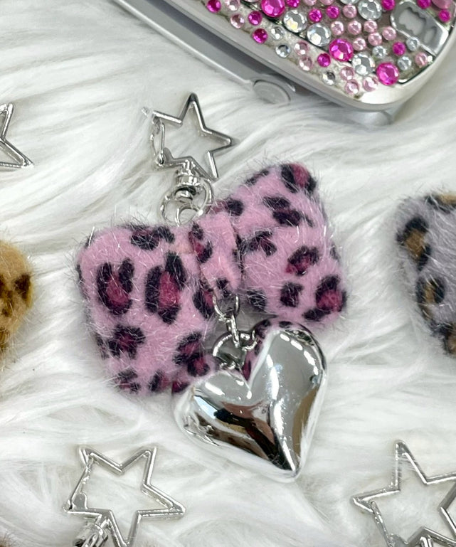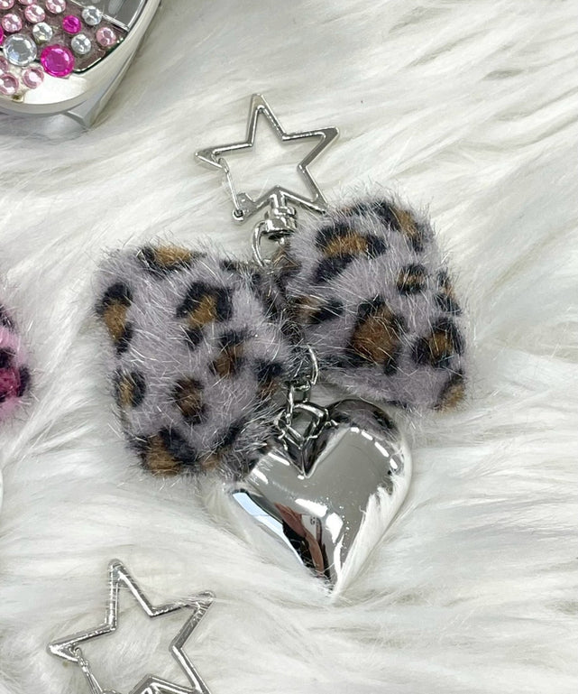 ファー素材のリボンにメタルハートがゆれる、ガーリーストリートなキーホルダー。
