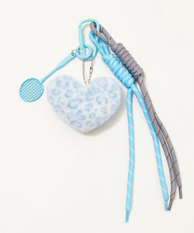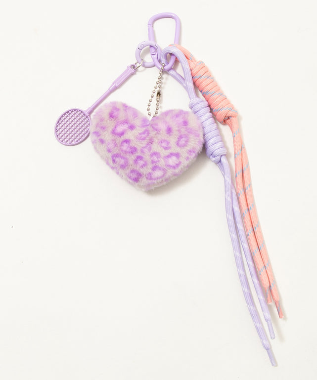 ふわふわ素材のハートチャームに、トレンドのレオパード柄をプラスした大人かわいいキーホルダー。