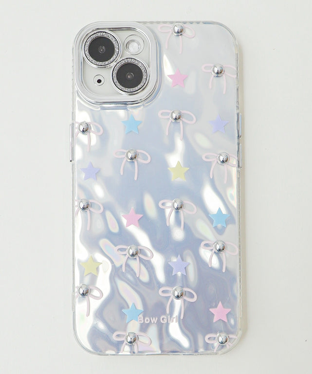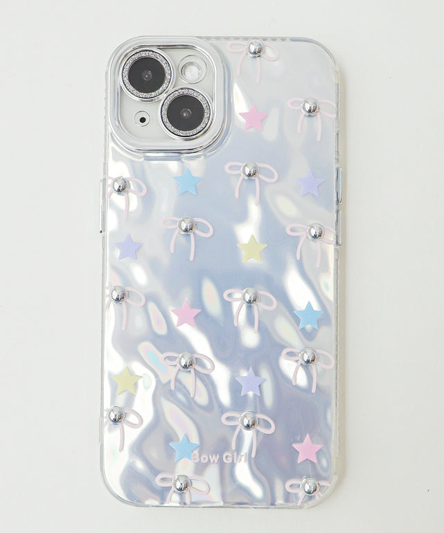 オーロラに輝くベースに、カラフルな星とリボンモチーフが散りばめられたデザインがポイント♡