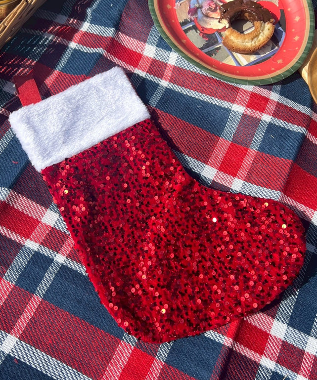 キラキラのスパンコールが目を惹く、クリスマスシーズンにぴったりのくつした