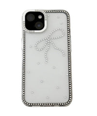 ビジューで描いたリボンモチーフが映えるiPhoneケース。