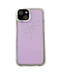 ビジューで描いたリボンモチーフがきらりと輝くiPhoneケース。
