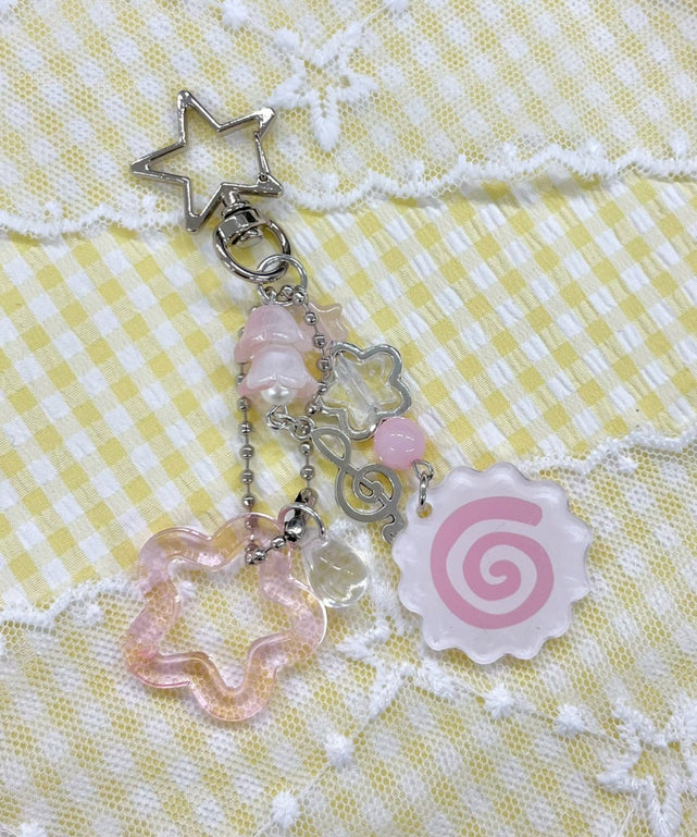 ぐるぐるモチーフとピンクを基調としたキーホルダーたち♪