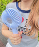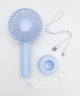 外でも快適に過ごせるように手持ちでも使用できる&お部屋でも使用できるようにスタンドがついた仕様!