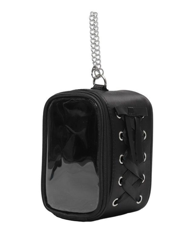 ①サテン生地で光沢感がありサイドのレースアップとの相性◎