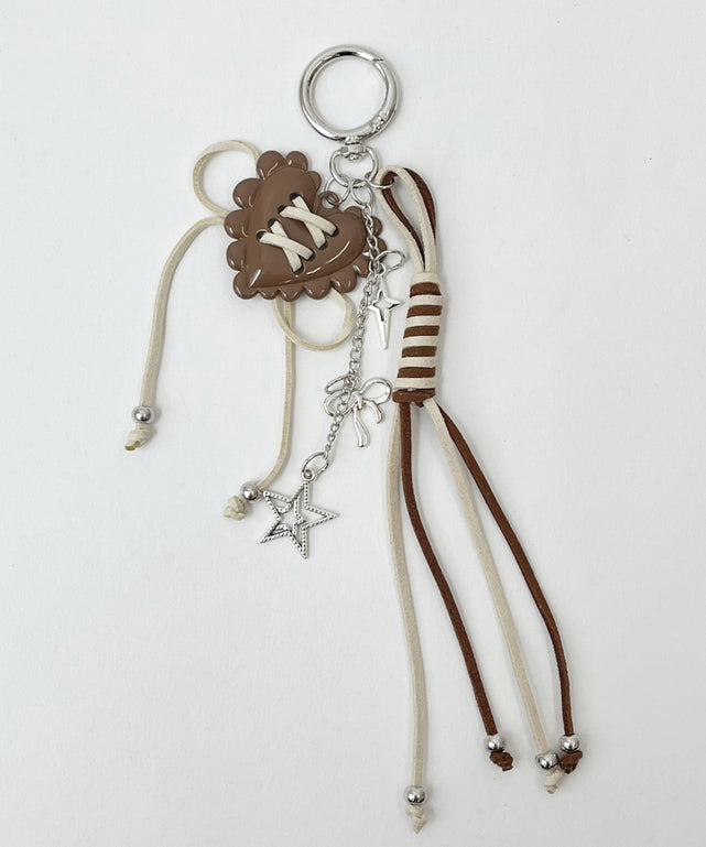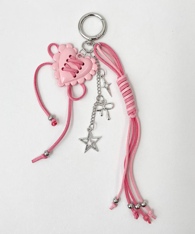 ハートや紐、チャームなどがセットになっているお得感満載のセットキーホルダー!