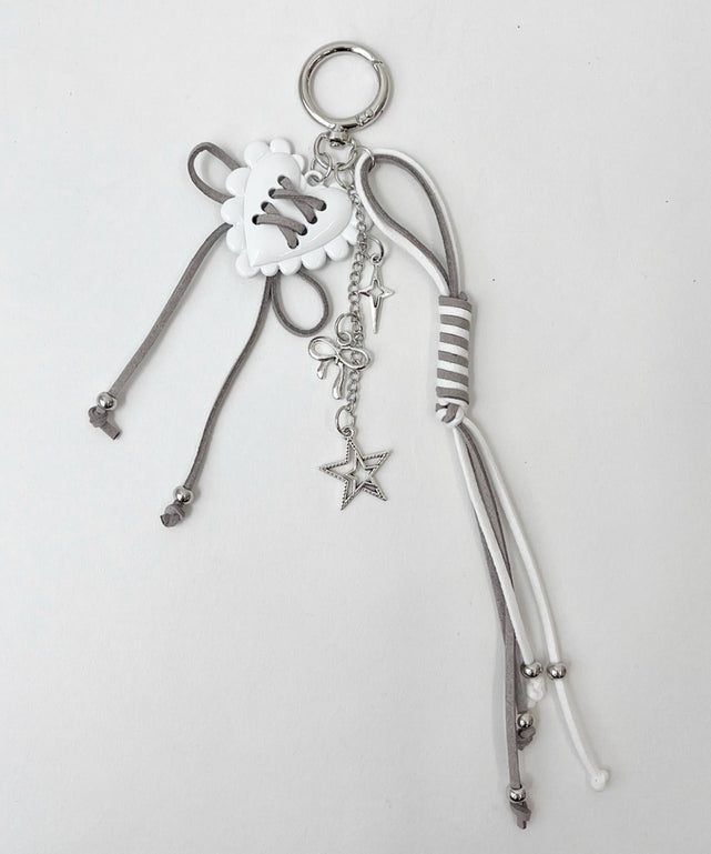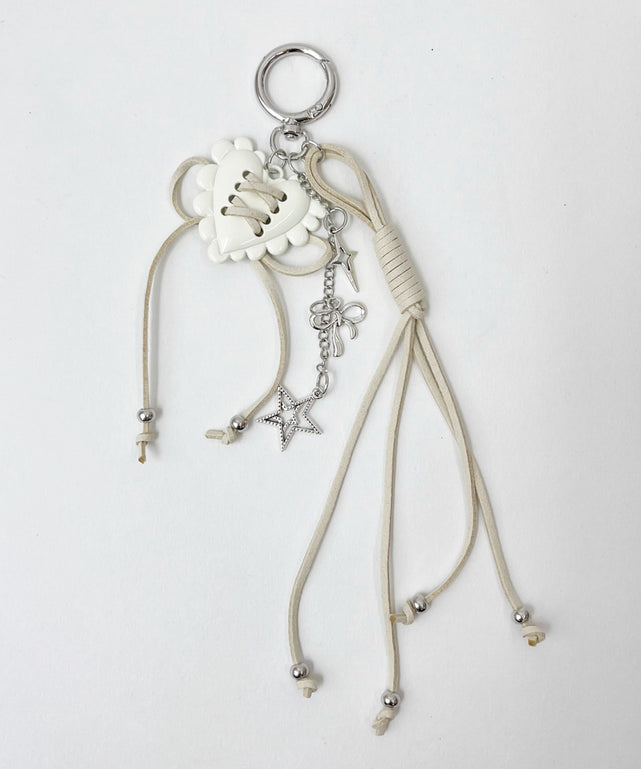 レースアップハートセットキーホルダー/ホワイトソノタ