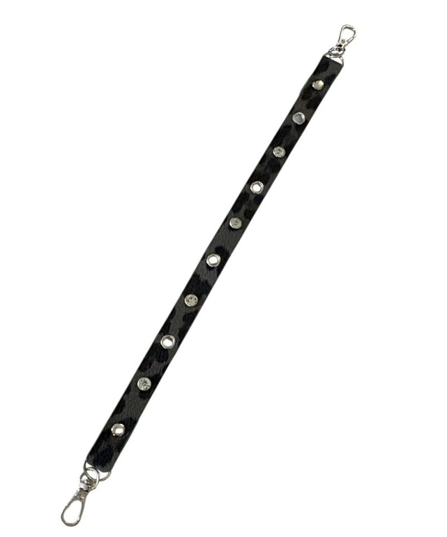 レオパード柄にビジューとハトメを組み合わせた、存在感たっぷりのハンドストラップ☆