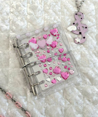 キラキラとしたラメ入りのクリア素材に、ハートやエンジェルのデザインを施した5穴バインダー。