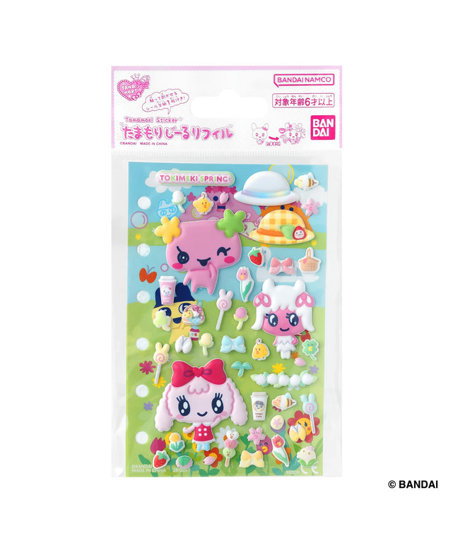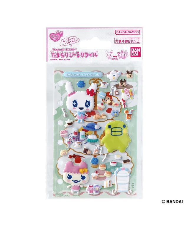 たまごっちのシールや台紙にアイテムのシールを重ねて自分流にアレンジする「たまもり」が楽しめる、貼ってはがせるぷっくりシールと台紙のセット!