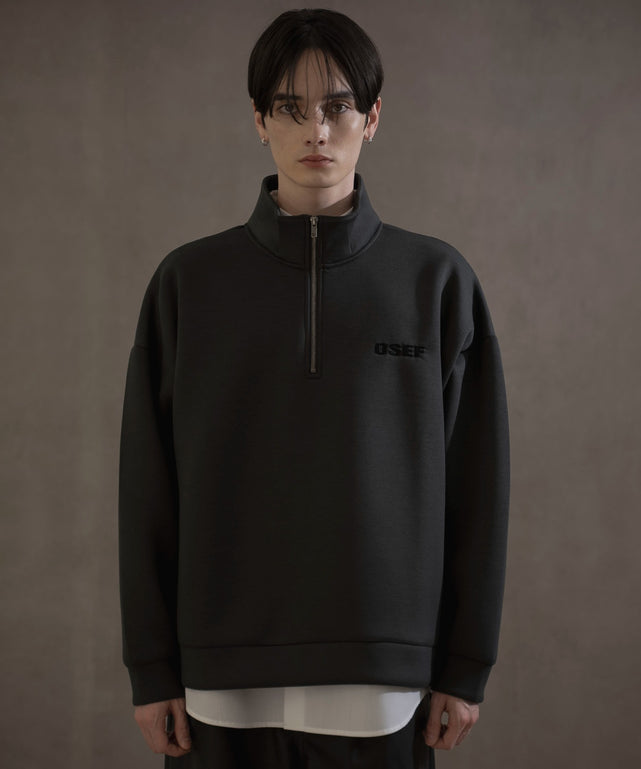 ハーフZIPなのでファスナーの開け閉めで雰囲気が変えられるのもポイント。