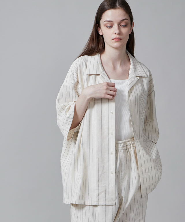 さらっとした質感のリネンレーヨン素材で着心地が良く、涼し気な印象を与えてくれます。