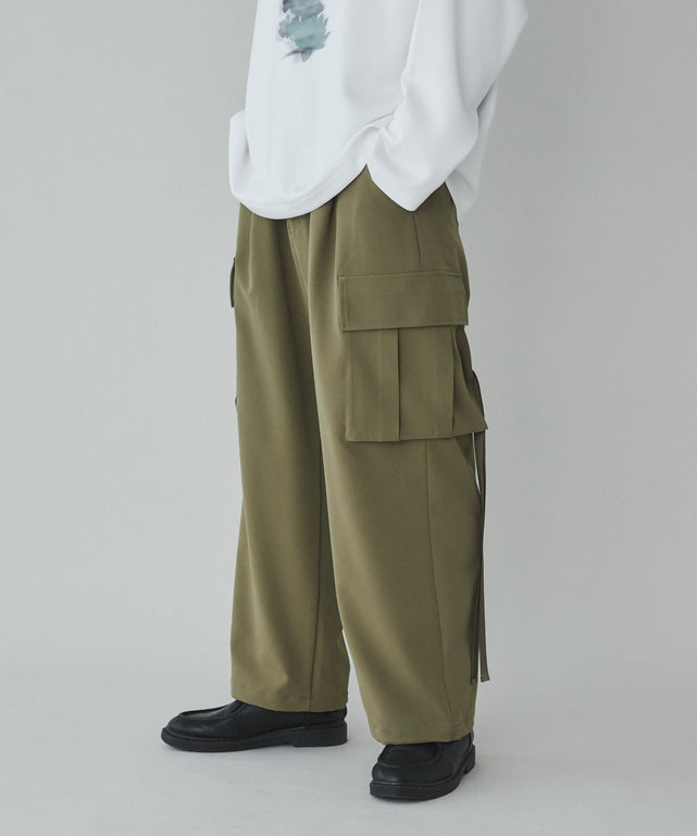 スラックスには珍しいカーゴパンツデザインで幅広いコーデに使えます。