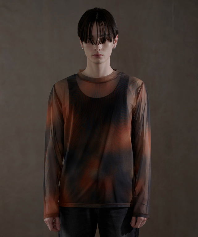 【シアーで透け感のあるトップスでレイヤードスタイルにピッタリ】