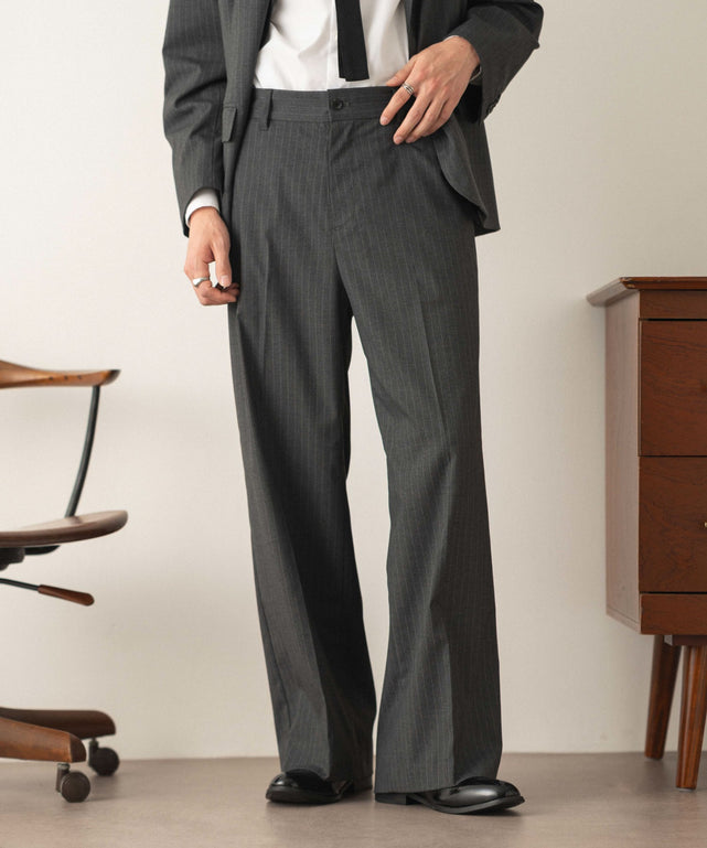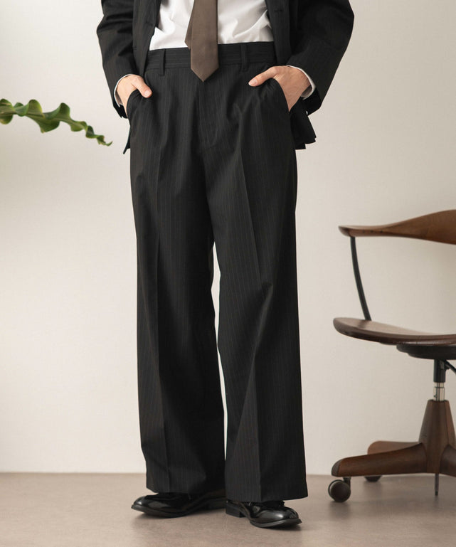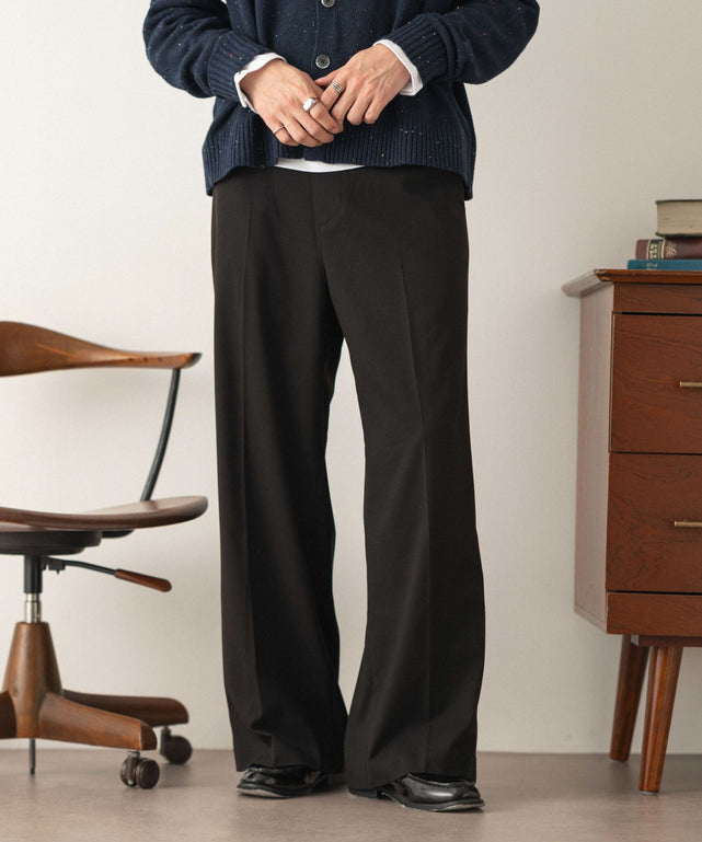 【程よいワイド感とストンと落ちるストレートシルエットが魅力のワイドストレートスラックス】
