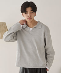 【すっきりとした抜け感を演出するスキッパーデザインのニットポロ】
