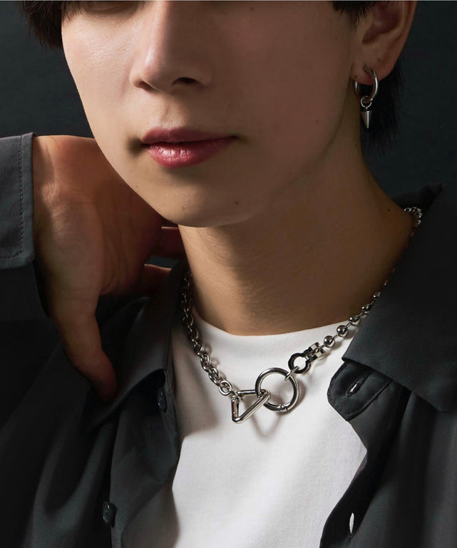シンプルなシルバーネックレスでありながらカラビナを組み合わせてるのでコーディネートのアクセントになること間違いなし!
