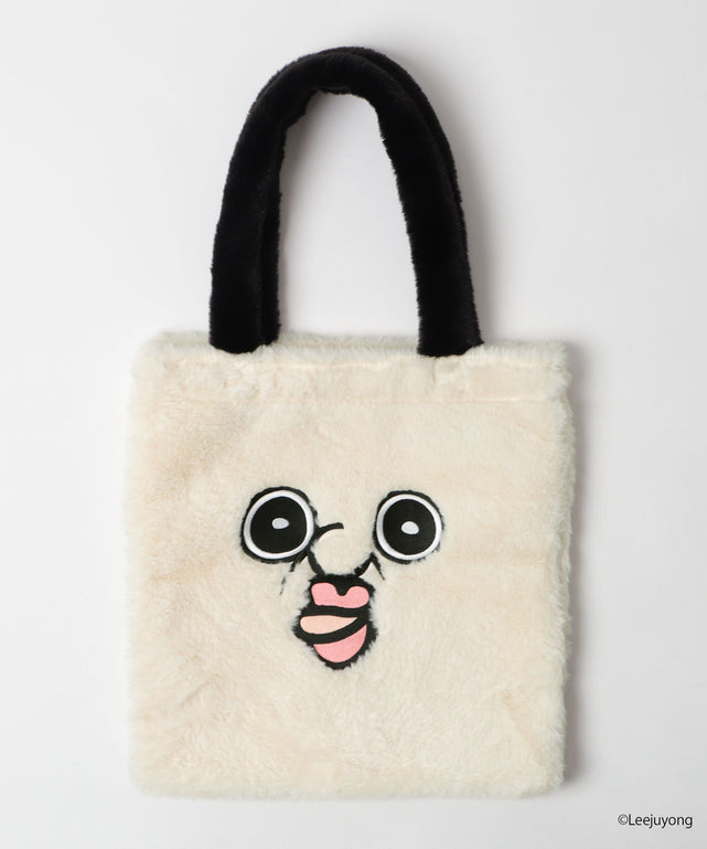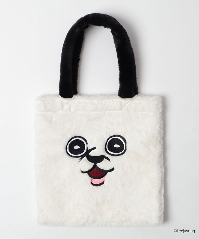 ふわふわ素材のフェイクファーにパンパンくんの刺繡が施されたトートバッグ☆