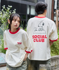 PEANUTSのキャラクターがデザインされたプリントTシャツ。