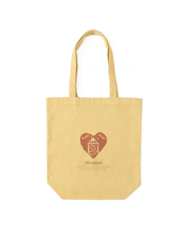 長崎名物の「白鉄火」や「ミルクセーキ」、「長崎新地中華街」をLOVE@仕様のデザインに落とし込んだトートバッグ。