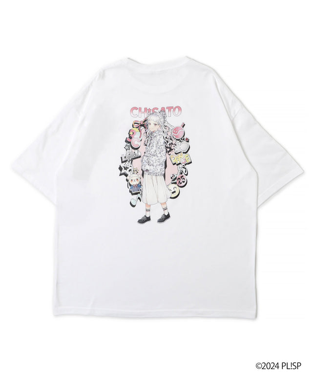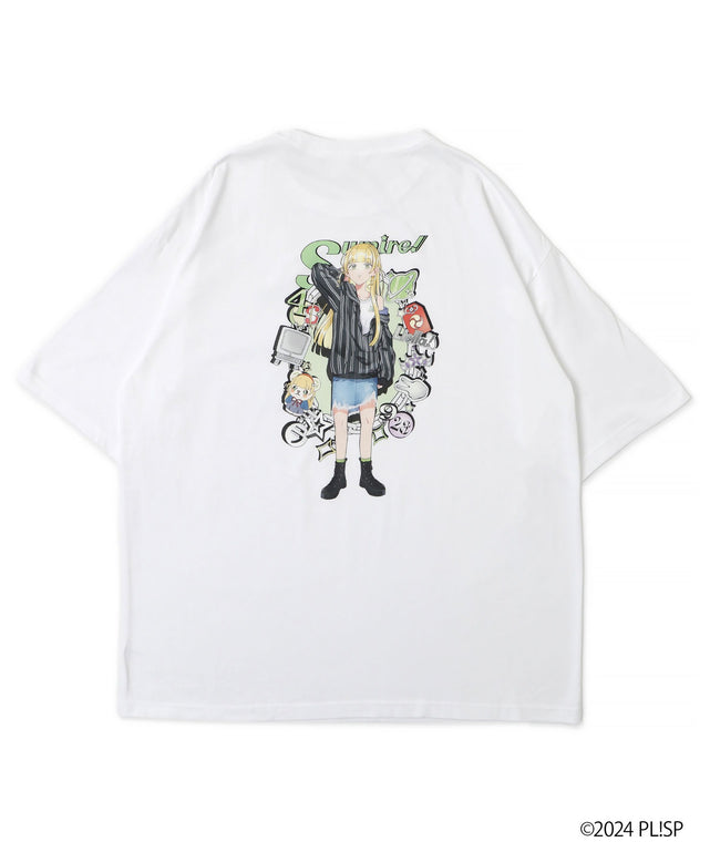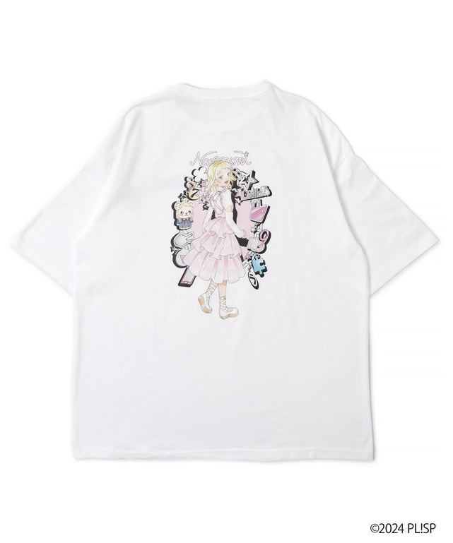 フロントにメンバーカラーのロゴ、バックにイラストが描かれたTシャツです。